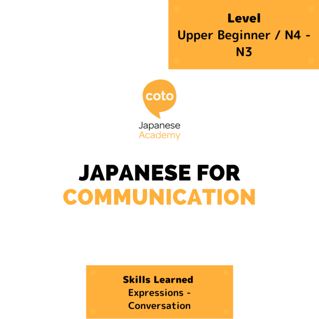 | Level | Upper Beginner ~ Intermediate (JLPT N4 – N3 ) | |