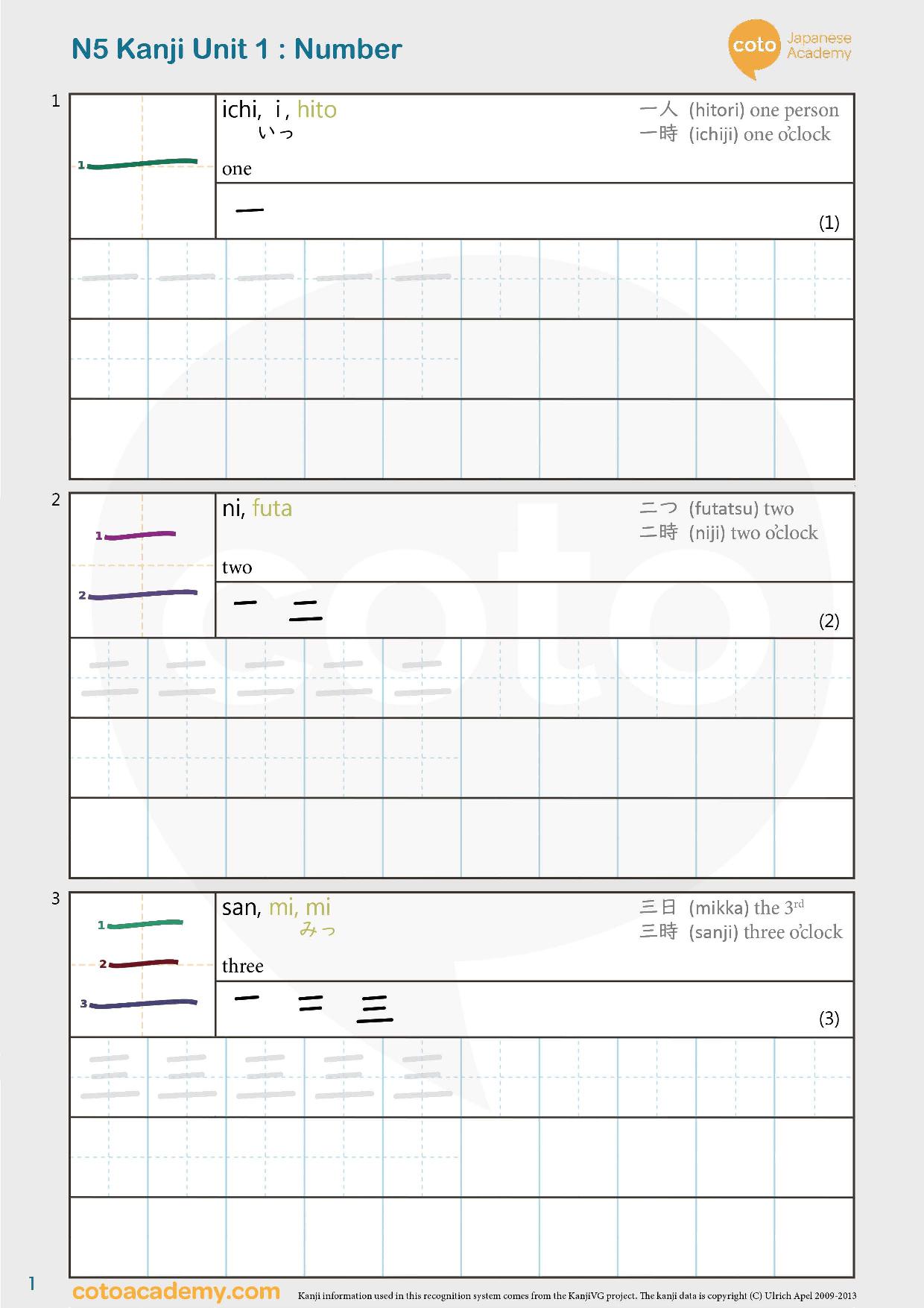 - Stroke order (the correct way to write kanji)Â is included in the practice sheet